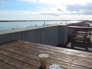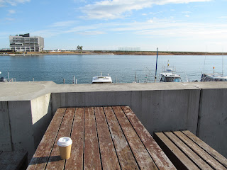 コーヒーのカップを持って、メイプル館の外に出た。防潮堤にもイスとテーブルが置かれている。